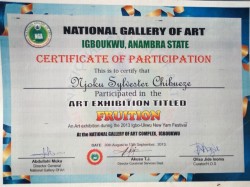 He is a graduate in Fine and Applied Arts, he studied at Federal Polytechnic Oko in Anambra state, where he majored in sculpture, graphics designs and painting.